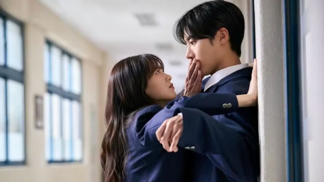 A série constrói sua angústia no contraste. De um lado, temos a leveza de um romance escolar, com seus encontros nos corredores e trocas de olhares.