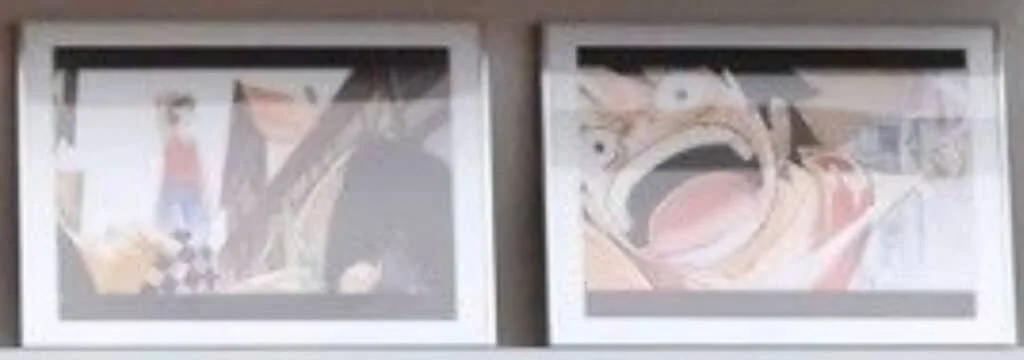Mesmo em baixa resolução, as imagens entregam detalhes preciosos. Na primeira, vemos os escombros de Orange Town logo após Luffy despachar a trupe de Buggy, o palhaço pirata. A segunda arte destaca o protagonista no instante em que prepara o icônico Gomu Gomu no Pistol, cena que remete tanto ao embate com Alvida quanto ao enfrentamento do Senhor da Costa, momentos marcantes do arco Romance Dawn.