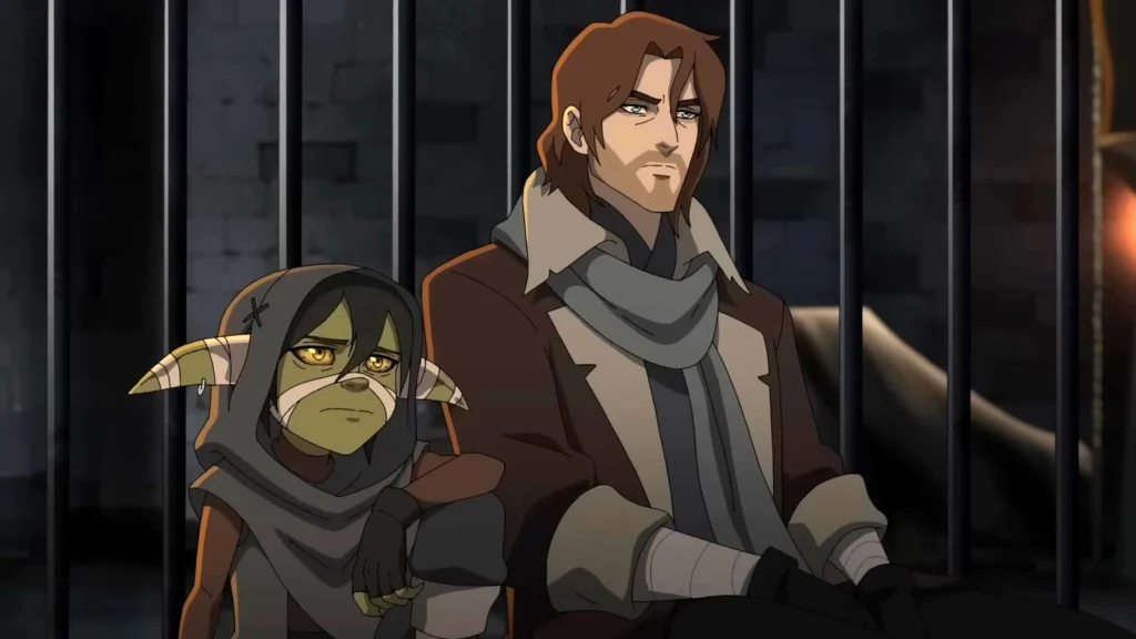 “Belonging” expõe o ponto de ruptura: o retorno a Zadash, a decisão de Caleb de partir e a recaída de Nott em velhos hábitos. Ao reencontrar antigos colegas Volstrucker, Caleb entende o risco de ceder ao isolamento. O remorso o conduz de volta a Nott, e o pedido de perdão em cena marca o momento em que ambos reconhecem que são mais fortes juntos. Para Sam Riegel, gravar esse reencontro foi como revisitar sua amizade na vida real com Liam O’Brien, que dubla Caleb. O ator conta que a química em estúdio refletiu anos de convivência pessoal, e ver essa ligação ganhar vida na animação trouxe “uma sensação de passeio pela memória”.