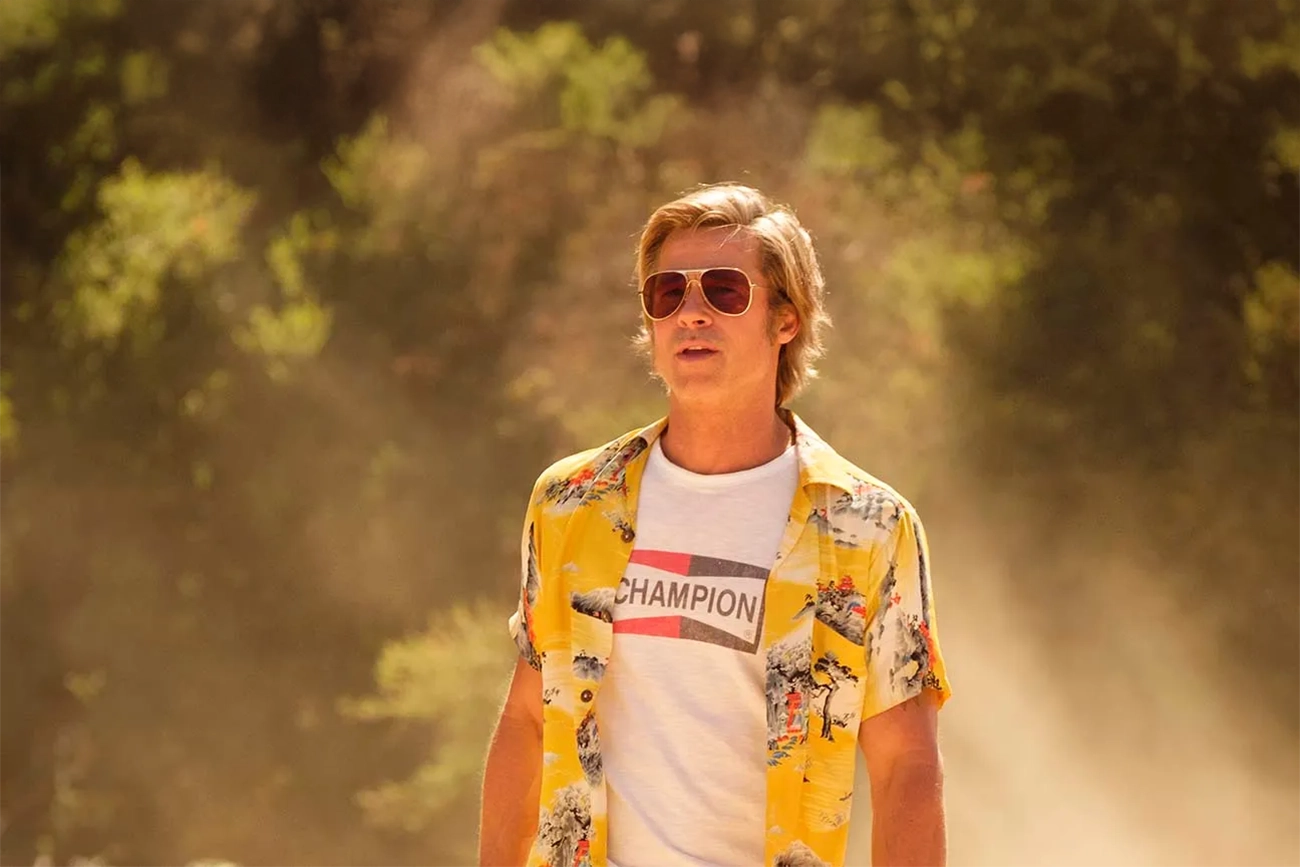 Ao lado de Rick está Cliff Booth, dublê interpretado por Brad Pitt, cuja tranquilidade quase filosófica contrasta com a ansiedade do ex-astro de faroestes.